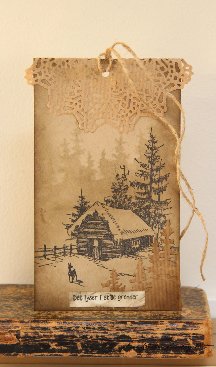 Tekst stempel fra Papirdesign og rammen rundt teksten er et stempel fra Tim Holtz - Label Frames