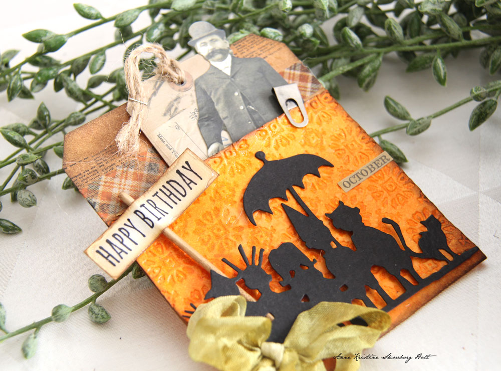 Koppene er stanset ut med Tim Holtz Sizzix dies.